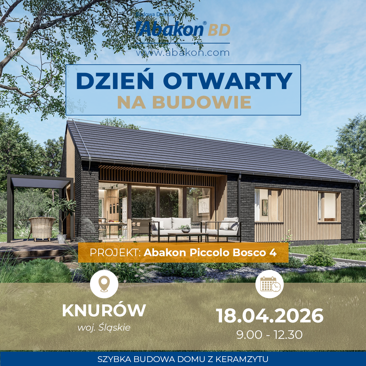 18 kwietnia 2026 r. zapraszamy do KNUROWA (woj. śląskie), gdzie pokażemy realizację domu z keramzytu według projektu: Abakon PICCOLO BOSCO 4.