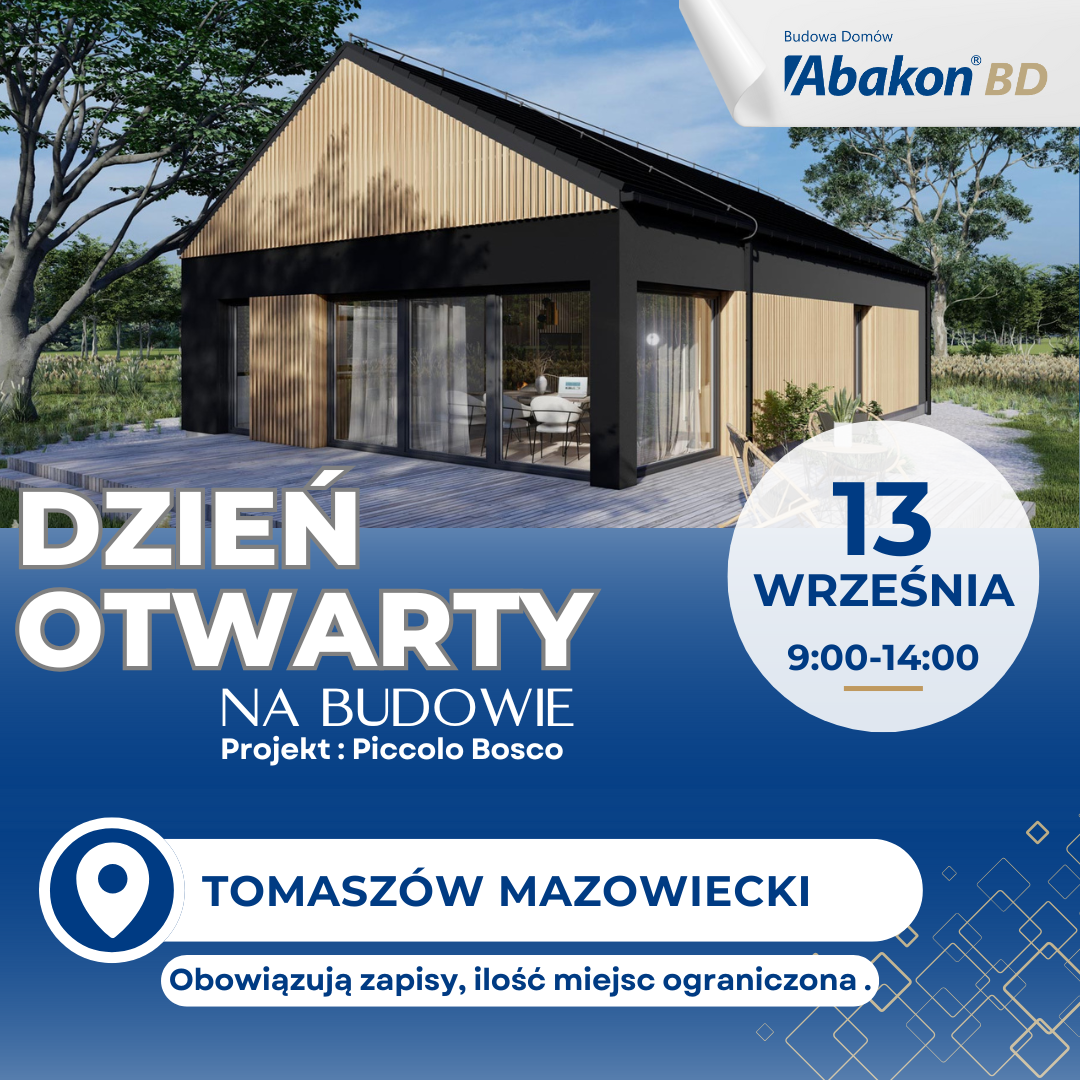 13 września 2025 r. zapraszamy do TOMASZOWA MAZOWIECKIEGO (woj. łódzkie), gdzie pokażemy parterowy dom z keramzytu, według projektu: Abakon Piccolo Bosco.