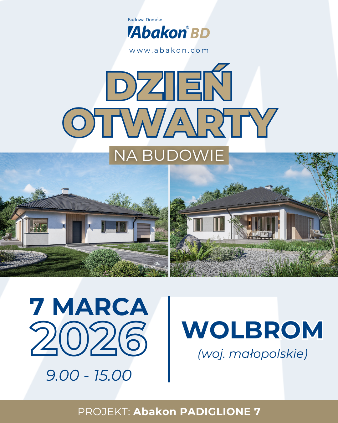 7 marca 2026 r. zapraszamy do WOLBROMIA (woj. małopolskie). Pokażemy dom z keramzytu, według projektu: Abakon PADIGLIONE 7.